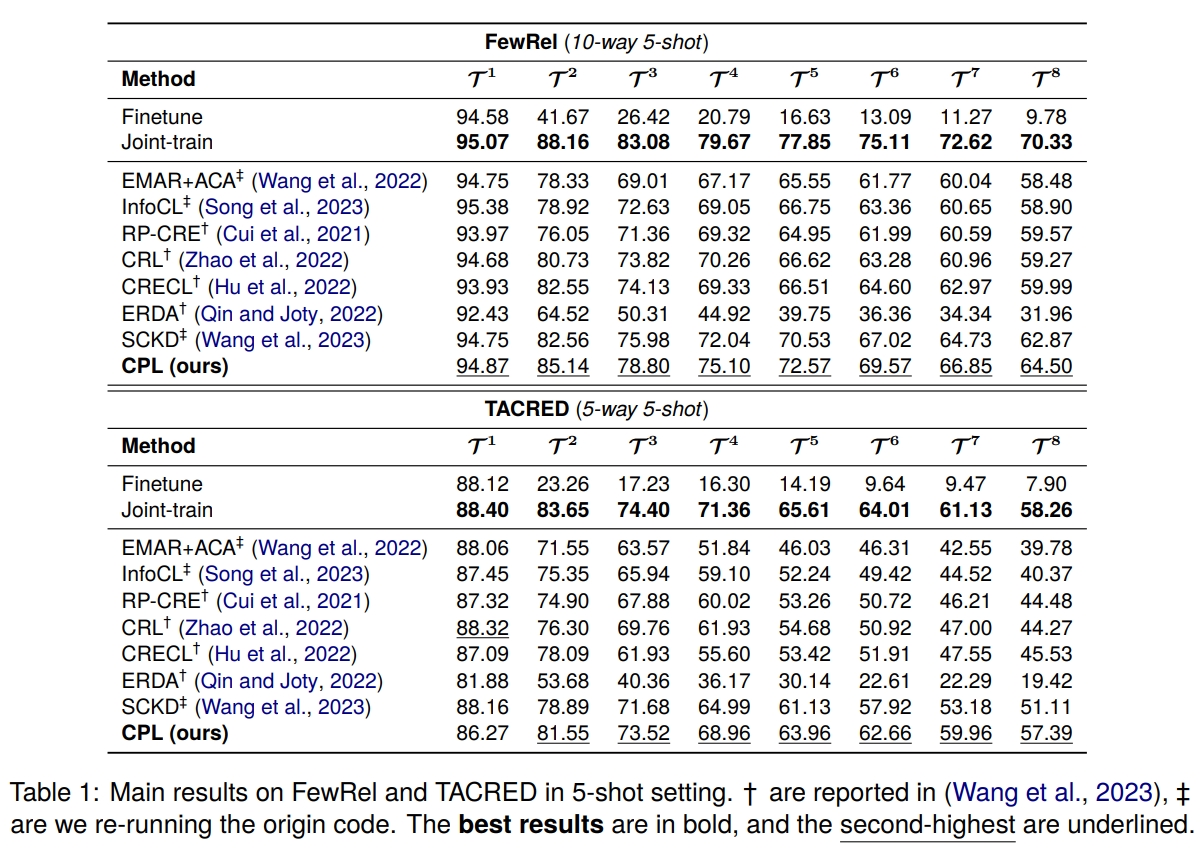 因此,提出了持续少样本关系抽取(Continual Few-shot Relation Extraction, CFRE),其目标是在有限的标注数据约束下,持续学习新关系的同时保留先前学习的关系知识。这一实际任务带来了两个重大挑战: